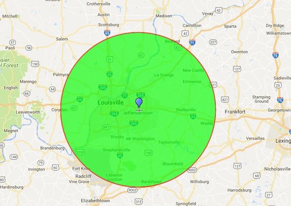 Free delivery to anywhere in the green area! Being centrally located in Louisville, KY provides quick service to most of the central United States. From Zeeland Michigan to Opelika, Alabama we are ready to bring quick temporary cooling to: factories, hospitals, schools, apartments, office buildings and even trailers.